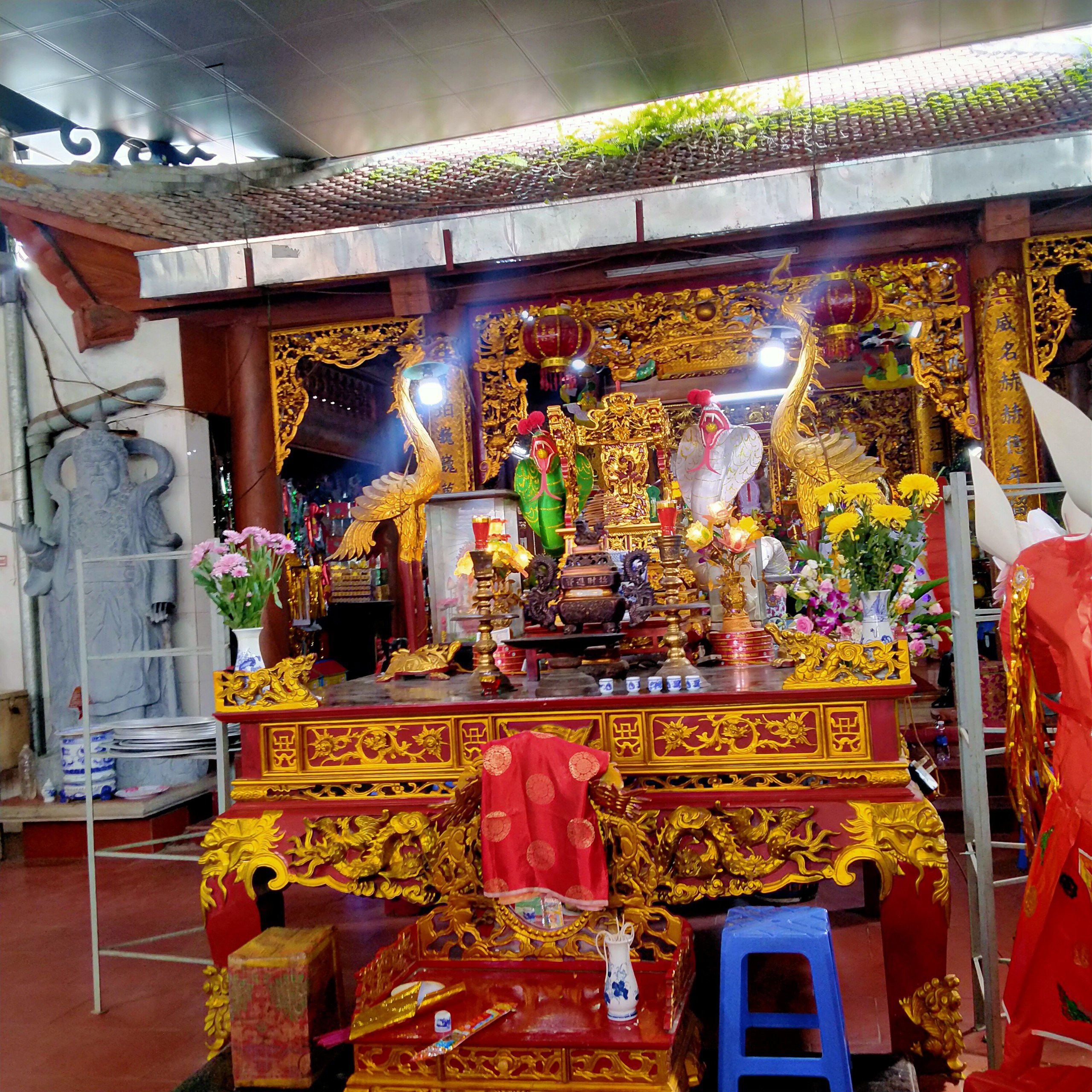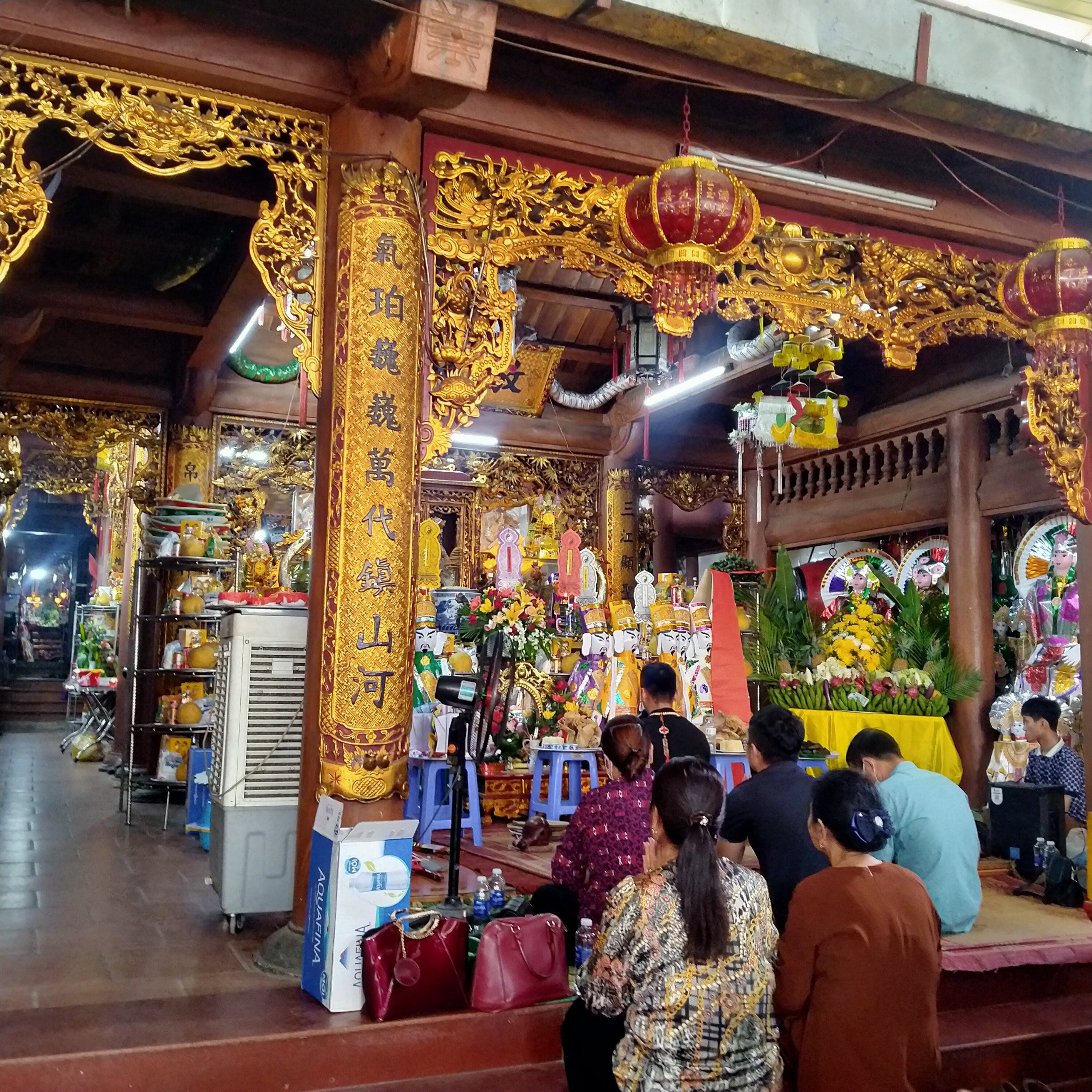 Ban thờ công đồng ngoài sân đền, nơi diễn ra các hoạt động tín ngưỡng thờ Mẫu (Ảnh: Phương Thảo)